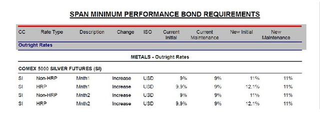 本月早些时候,芝商所已将贵金属期货保证金设定方式从基于固定美元金额的体系,改为按所谓名义价值百分比计算的新体系。