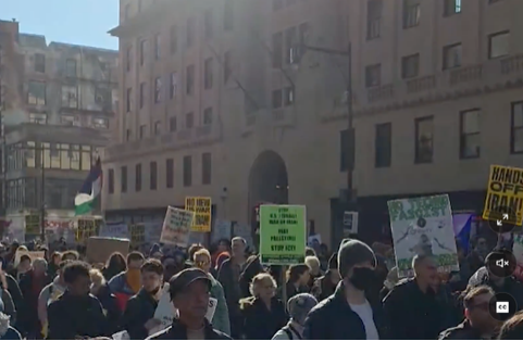 △纽约时期广场本日发生反战荟萃,抗议好意思以合股对伊朗发动军事打击