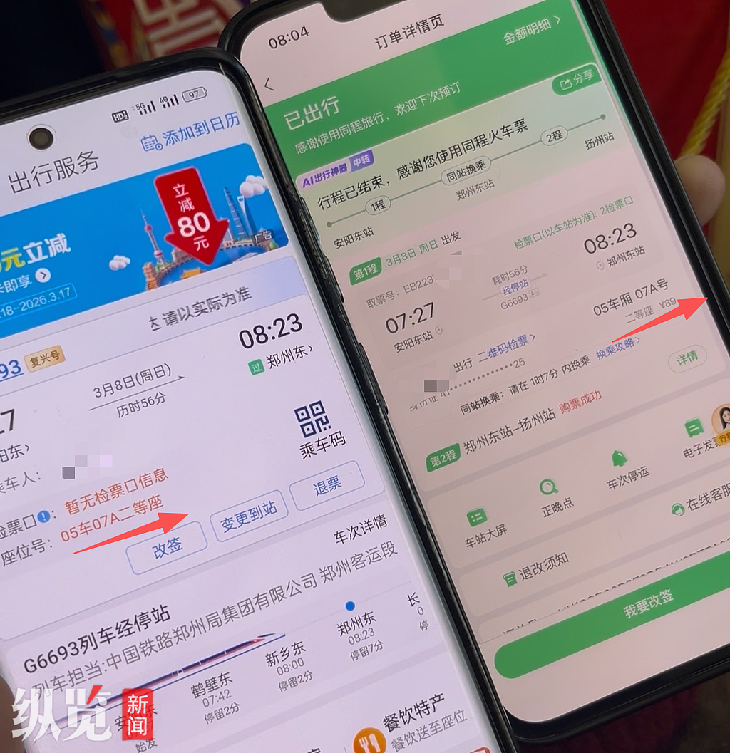 为何会出现两名乘客“同座”的情况?记者拨打了12306官方客服电话,客服东谈主员示意,官方售票系统不会对归并座位进行二次售票。客服东谈主员字据记者提供的信息查询发现,是由于这趟列车车体发生临时变更,这位通过第三方平台购票的搭客正本的5车07A席位进行了置换。“车体临时发生变更的话,有可能是这趟车加挂了8节车厢,也有可能是这趟列车本人用的是a车体, a车体当今需要熟识,就换了b车体。”客服东谈主员说,遭受这种情况,铁路部门会将变动后的席位信息以短信面孔发送至搭客,但第三方平台可能莫得更新。而这位吴先生所购买的车票并未发生置换,是以其本色座位即是车票涌现的5车07A。
