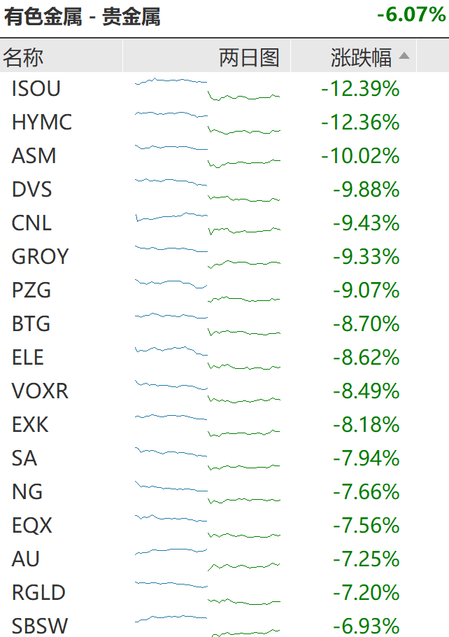 贵金属股集体跳水,盎格鲁黄金跌超7%,泛好意思白银跌逾6%,埃尔拉多黄金跌超6%,哈莫尼黄金跌逾6%,巴里克黄金跌超5%。