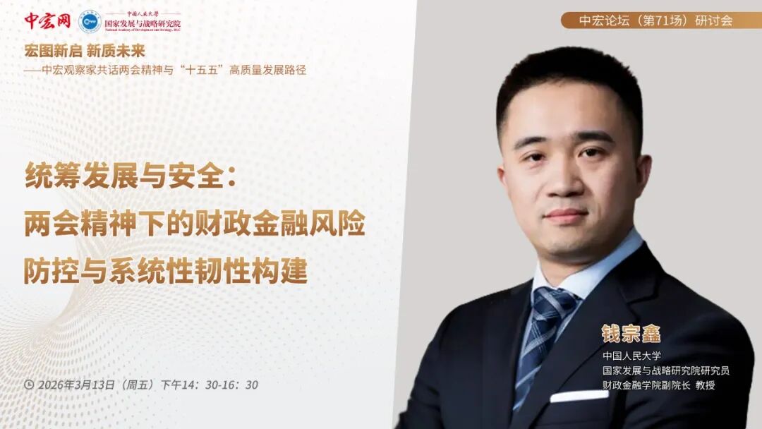 在2026年天下两会收效闭幕,学习贯彻两会精神之际,聚焦“宏图新启 新质将来——中宏不雅察家共话两会精神与‘十五五’高质料发展旅途”主题,中宏论坛第七十一场研讨会于13日下昼在中国东谈主民大学圆满召开。本次论坛由中宏网与中国东谈主民大学国度发展与计策推敲院连络附近。中国东谈主民大学财政金融学院副院长钱宗鑫应邀出席论坛并作了主题发言。