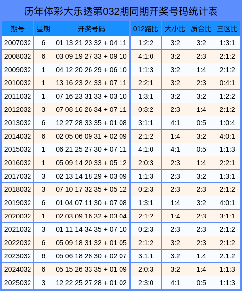 积年第2026032期大乐透数据统计表